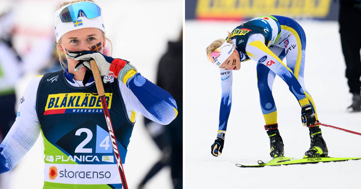 – Jeg jobber litt med å komme meg og så tenker jeg at jeg ikke klarer å henge med i nedoverbakken. Jeg har aldri hatt så gode ski. Det er surt, sier Frida Karlsson til SVT Sport.