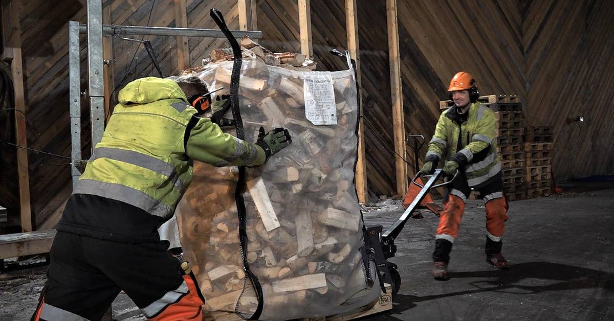 – Vi har en bestilling i Norge på 1500 sekker à 1,5 kubikk som vi jobber med akkurat nå, sier Fredrik Dahlberg. Det er et enormt rush i vedbransjen akkurat nå.