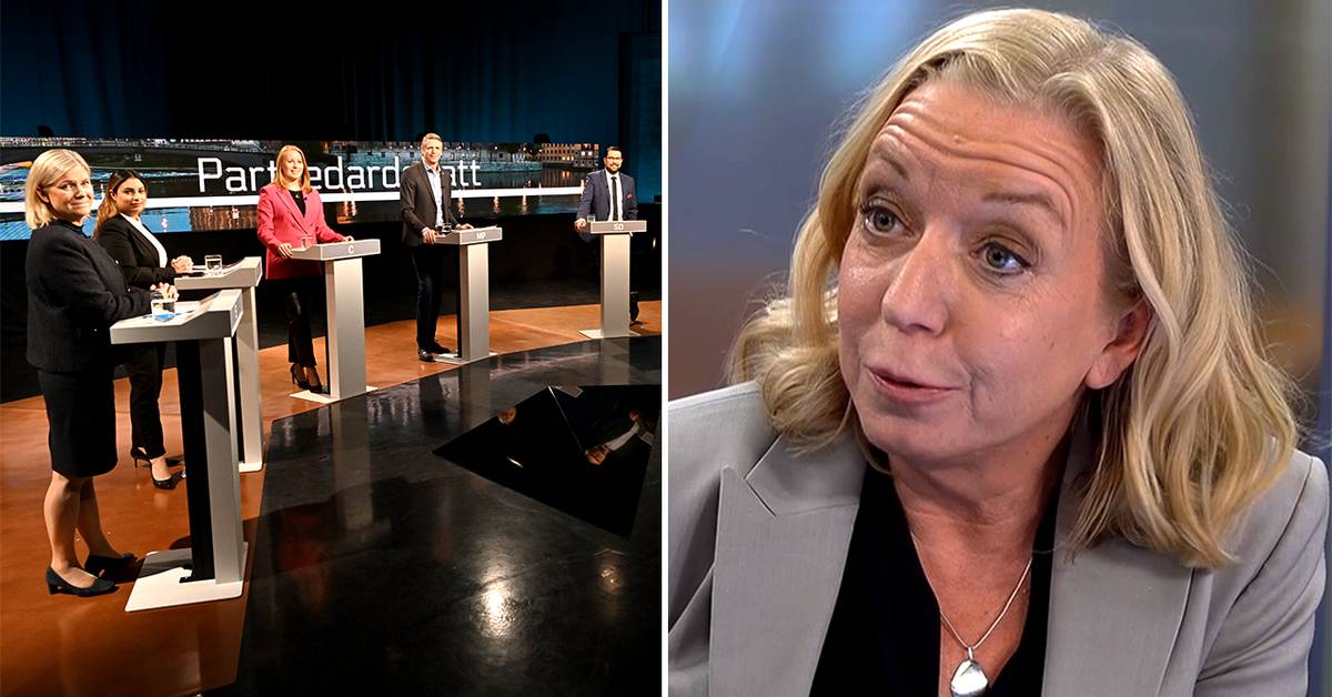 – Det virket nesten for partilederne at vi snart har valg igjen og ikke som vi hadde valg for tre måneder siden. Det har vært mye skyld på hverandre hvis feil ulike sosiale problemer er, sier Elisabeth Marmorstein, internpolitisk kommentator i SVT, om første del av debatten.