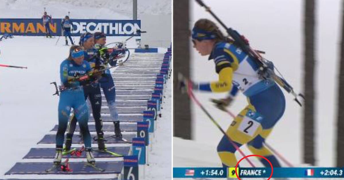Franske Justine Braisaz-Bouchet brukte et nytt magasin i stedet for å laste en runde til på den siste strekningen.